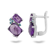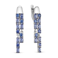 Серьги из серебра с пл.кварцем цв. танзанит родированные