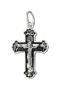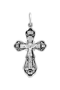 Подвеска в виде креста из серебра с фианитами родированная
