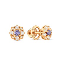Серьги-пусеты из серебра с кристаллами премиум Австрия цв.Мистик розовый родиров
