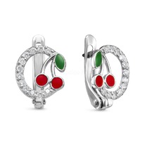 Серьги из серебра с эмалью и фианитами родированные 925 пробы 5043р-2