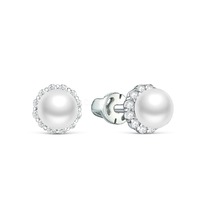 Серьги-пусеты из серебра с синт. муассанитами и фианитами родированные с-3818рс1