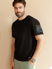 Акция Vilatte Свободная футболка с авторским принтом U49.048 черный_run faster