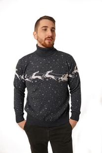 ESENIA Водолазка мужская полушерстяная толстой вязки - Тёмно-серый с оленями