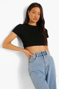 boohoo Short Sleeve Cotton Crop Top COLOUR: BLACK