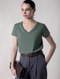 Vilatte Футболка из премиального хлопка с V-образным вырезом D49.109 оливковый