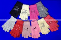 Перчатки женские, подростковые ангора однотонные со стразами с сенсорными пальчи